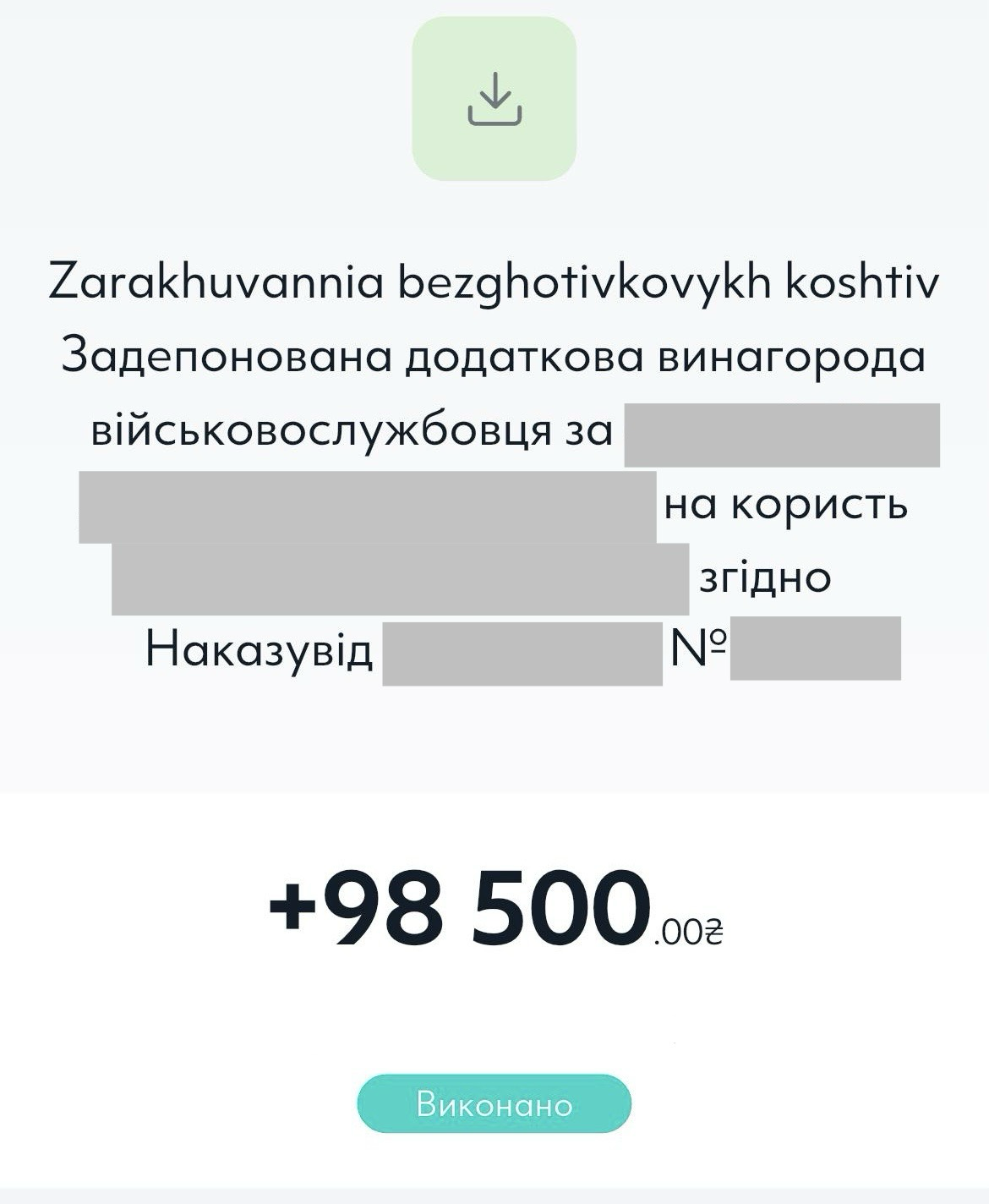 У підсумку клієнтка, як єдина особа у розпорядженні військовослужбовця, отримала додаткову винагороду у розмірі 100 000 грн, передбачену законодавством за безпосередню участь у бойових діях.
